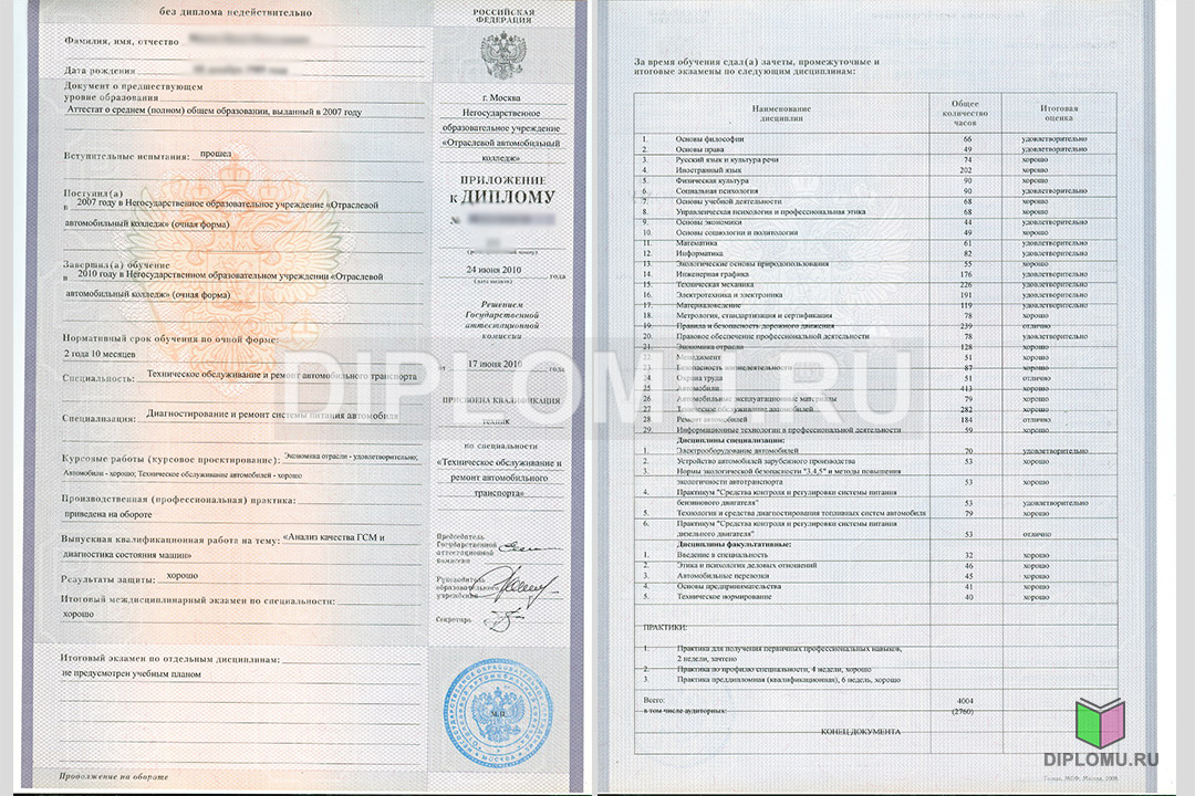 Купить диплом о среднем образовании 2007-2010 года